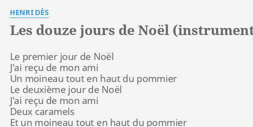 Les Douze Jours De Noel Instrumental Lyrics By Henri Des Le Premier Jour De